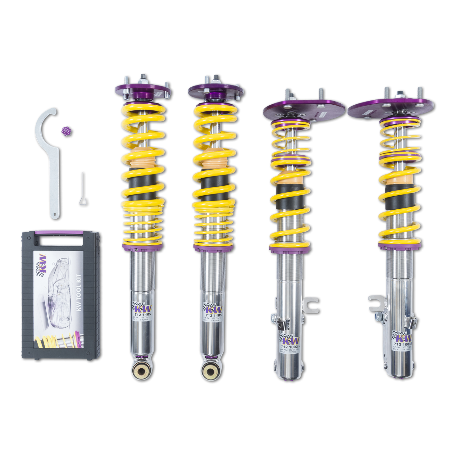 KW ingenjörer har utvecklat en harmonisk men samtidigt sportig grunduppställning, precis som på alla andra KW coilovers.